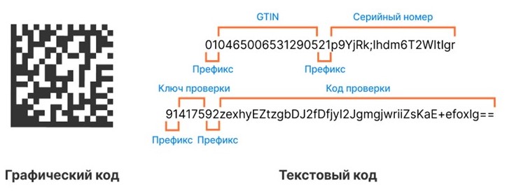 Data Matrix на товаре, упаковке или этикетке - это графический код. Если в мобильном приложении «Честный знак» отсканировать код маркировки, можно получить всю информацию о товаре: место, дату и время производства, срок годности, процесс перехода от собственника к собственнику, дату и место продажи.